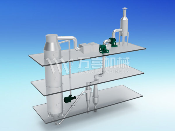 根據(jù)PVB的物料特性,采用旋轉(zhuǎn)閃蒸干燥機(jī)來干燥PVB,整套設(shè)備采用蒸汽加熱,干燥處理能力為800Kg/h,可將初水分35...