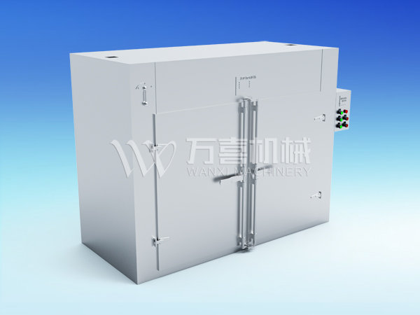 大部分熱風在箱內循環,熱效率高,節約能源。利用強制通風作用,箱內設有可調式分風板,物料干燥均勻,熱源可采用蒸汽、熱水、電、遠紅外,選擇廣泛。整機噪音小,運轉平衡。溫度自控,安裝維修方便。適用范圍廣,可干燥各種物料,是通用干燥設備。