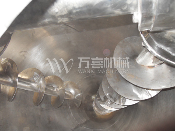 4. 上升的物料受自身重力作用下降 。四種運動在混合機內產生對流、剪切 、擴散、從而達到快速均勻混合的目的。