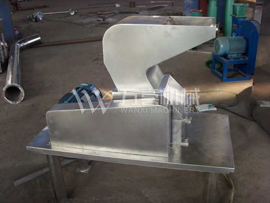 ??物料由進料斗送進粉碎室,經刀刃和刀座的沖擊,旋轉刀和固定刀同時剪切粉碎,由于受到旋轉離心力的作用,物料自動從出口處流出。