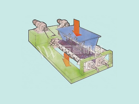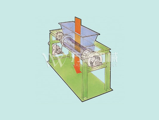 ◎槽形成型機: 由加料斗和刻有槽的二根輥子構成。以增大物料表面積的造粒為目的。物料被內側運轉的輥子吸入,被反轉的外側刮刀切成粒狀。