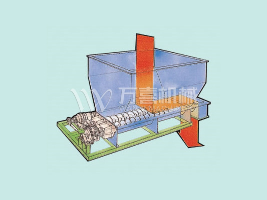 ◎水平擠出成型機: 由加料斗、二根輥子和U形振動網構成。以增大物料的表面積為目的,造粒物料與振動網接觸,由旋轉輥子的強制壓力擠出網外,形成圓柱形的顆粒。