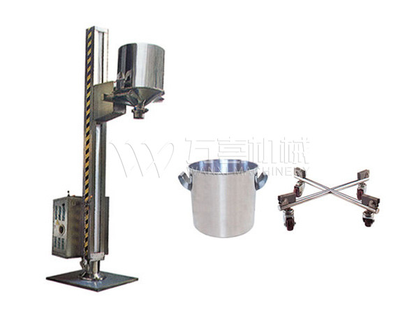 ??TJG 系列固定提升加料機(jī)由兩部分組成,即提升機(jī)及底座。提升機(jī)由機(jī)架、液壓提升系統(tǒng)及料門翻轉(zhuǎn)機(jī)構(gòu)組成。工作時,先將提升機(jī)的料門與料桶扣合,啟動提升操作桿,料門與料桶一起上升,啟動翻轉(zhuǎn)操作桿,料桶即可番轉(zhuǎn)180度,呈底桶向上姿態(tài)并移動到所需位置,利用料門上出料蝶閥,可很容易將物料加入所需的工藝設(shè)備中。